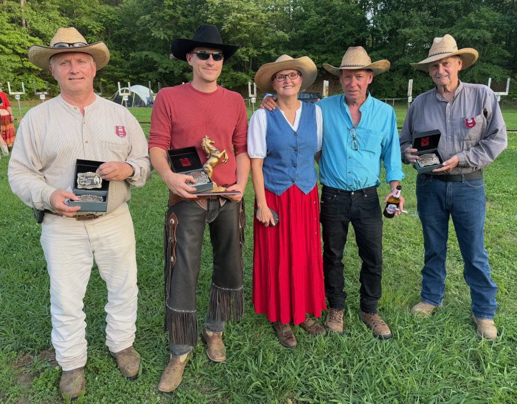 Congratulations to our new SASS Regulators! From left to right: Hurricane Charly, Sudden Sam, and Double Barrel. We would also like to thank Ocoee Red and Purly, also pictured, for their tireless efforts to bring this recognition to fruition.